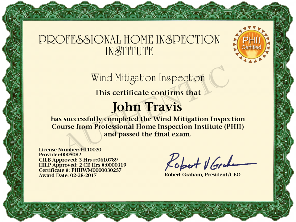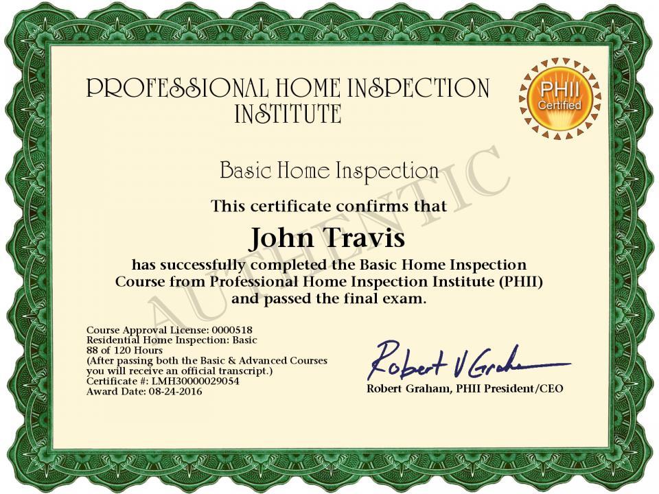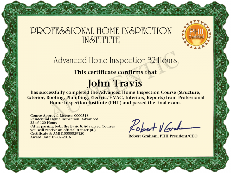 In addition to being a licensed home, inspector John holds several other useful certifications from his years of experience and education.